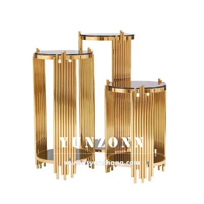 χονδρικό πλευρικό τραπέζι μοντέρνου σχεδιασμού 3 σετ με χρυσό ανθοστάσιο από ανοξείδωτο χάλυβα
