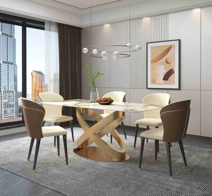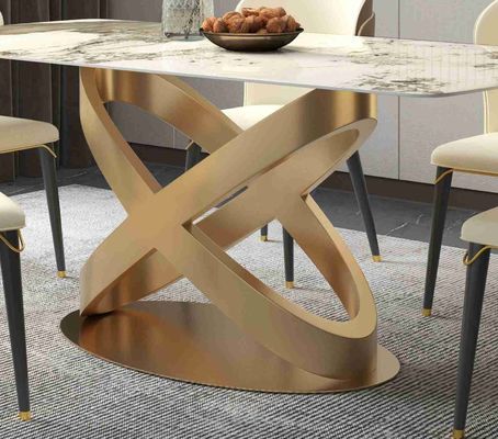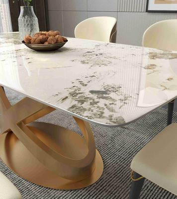 Σύγχρονος άσπρος ορθογώνιος πέτρινος να δειπνήσει πίνακας με τα νέα βάθρα χαλκού σχεδίου