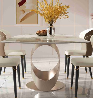 Καυμένος με λεπτό στρογγυλό tabletop ακρογωνιαίων λίθων και μια σταθερή βάση ανοξείδωτου Χ, προσθέτει μια καθαρισμένη αφή στο σύνολο τραπεζαρίας σας.