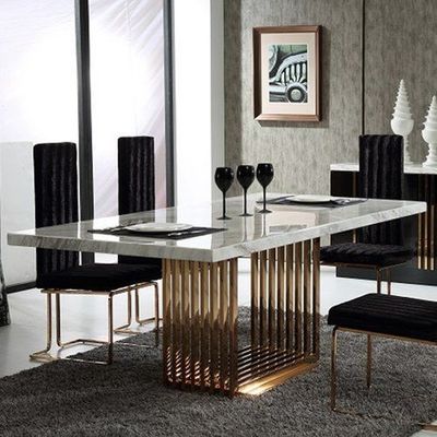 Σκανδιναβικός μαρμάρινος καθορισμένος ορθογώνιος σύγχρονος συνδυασμός επιτραπέζιων 150*90*75 πινάκων και καρεκλών τοπ να δειπνήσει πινάκων