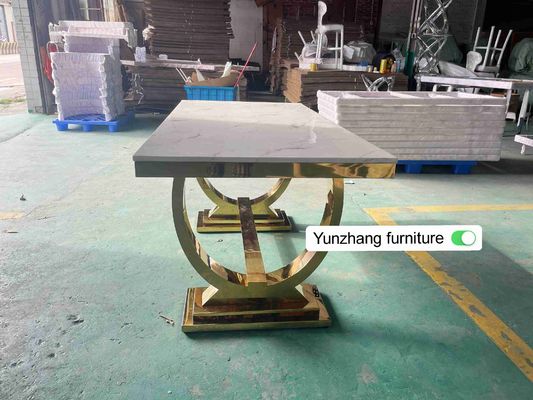 Καυτός να δειπνήσει σχεδίου πώλησης πίνακας με την ασημένια χρυσή μαρμάρινη κορυφή βάσεων ανοξείδωτου
