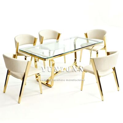| Όνομα Προϊόντος: | Εστιατόριο Υψηλής Πολυτέλειας Τραπεζαρία Καρέκλες Χρυσό Ανοξείδωτο Ατσάλι Σχεδιασμός Πολύχρωμα Δερμάτινα Μαξιλάρια Έπιπλα Γάμου Μέταλλο |