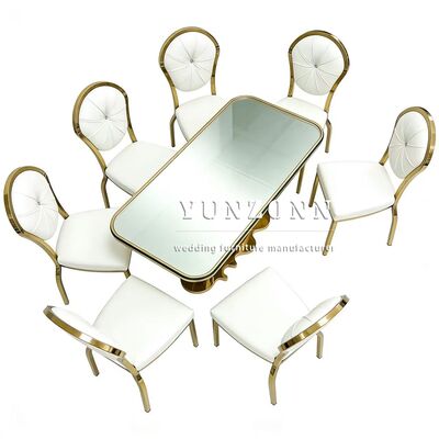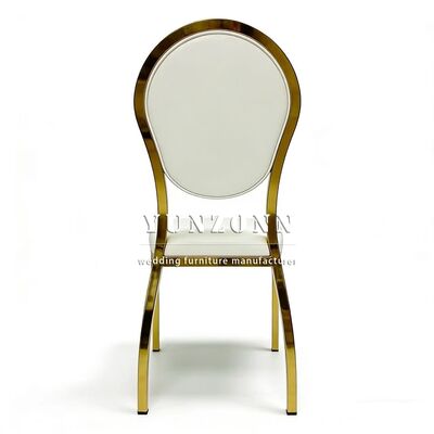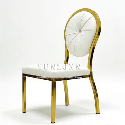 Ζεστή εκδήλωση Στρογγυλή πλάτη Σχεδιασμός Χρυσό πάρτι Ατσάλινο ξενοδοχείο Γάμα Καρέκλα Εργοστάσιο χονδρικής από ατσάλινη πλάτη Καρέκλα ξενοδοχείο τραπέζι |