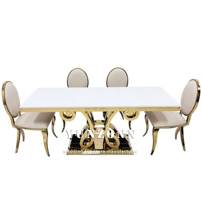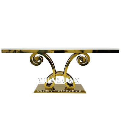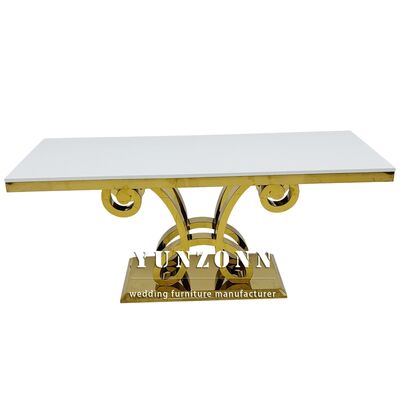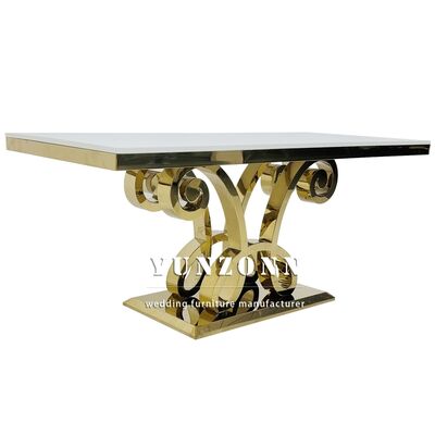 | Όνομα προϊόντος: | Νέο σχέδιο πολυτελείας ορθογώνιο γυάλινο χρυσό ανοξείδωτο ατσάλι τραπέζι γάμου για χρήση σε πάρτι |