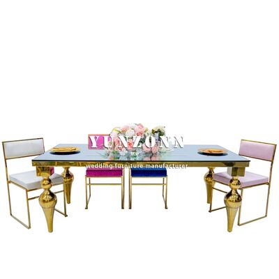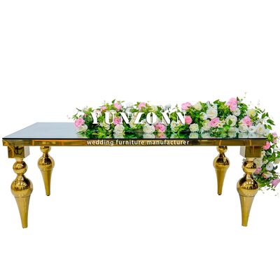| Όνομα προϊόντος: | Φοσάν Εργοστάσιο Φθηνή Τιμή Ξενοδοχείο Έπιπλα Τραπεζαρίας Χρυσό Ανοξείδωτο Ατσάλι Καθρέφτης Γυάλινη Επιφάνεια Τραπεζιού Τραπέζι Γάμου |