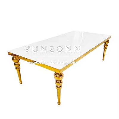 | Όνομα προϊόντος: | Πολυτελές τραπέζι τραπεζαρίας για ξενοδοχεία από MDF, 12 θέσεων, με χρυσό μεταλλικό ορθογώνιο σχήμα, κομψό κεντρικό τραπέζι |