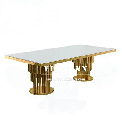 | Όνομα προϊόντος: | Σετ τραπεζαρίας από ανοξείδωτο ατσάλι σε χρυσό χρώμα με σχέδιο βάσης πεδίου για εξωτερικές δεξιώσεις, γάμους και εκδηλώσεις ξενοδοχείων |