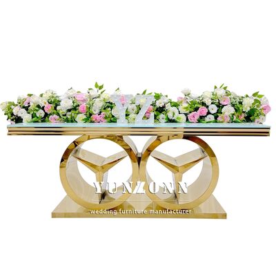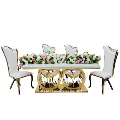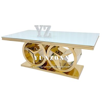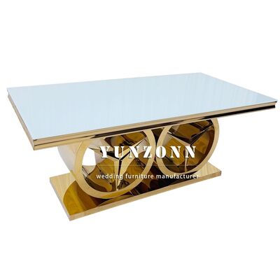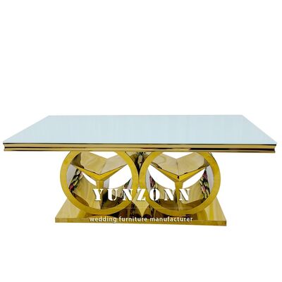 | Όνομα προϊόντος: | Σύγχρονο χρυσό ορθογώνιο τραπέζι δείπνου με βάση Benz, πολυτελή έπιπλα για εκδηλώσεις γάμου για εξωτερική χρήση και χρήση σε ξενοδοχεία, γυάλινη/MDF επιφάνεια |