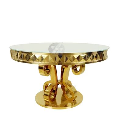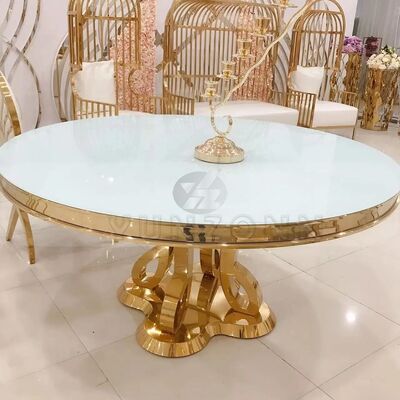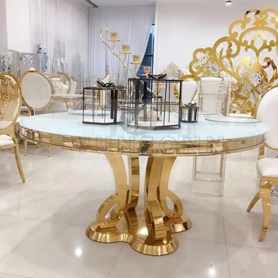 Σύγχρονο πολυτελές τραπέζι τραπεζαρίας από MDF/Γυαλί με ανοξείδωτο ατσάλι για γάμους, δεξιώσεις, πάρτι, ξενοδοχεία