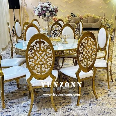 | Ονομασία του προϊόντος: | Luxury Royal and Modern Gold ξενοδοχειακές καρέκλες με ειδικά χαραγμένα μοτίβα από ανοξείδωτο χάλυβα για γάμους |