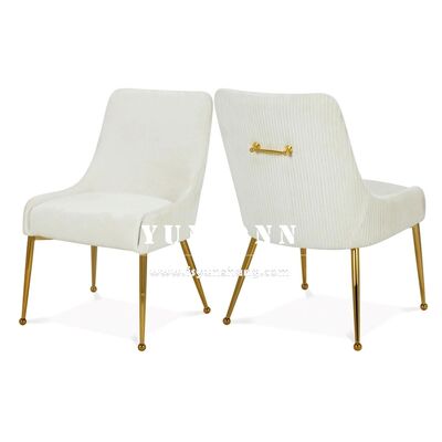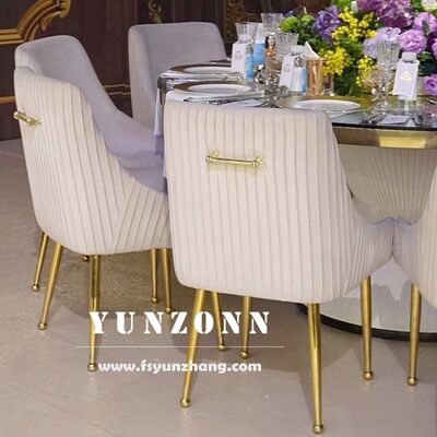| Όνομα Προϊόντος: | Πολυτελείς Καρέκλες Τραπεζαρίας Ξενοδοχείου από Χρυσό Ανοξείδωτο Χάλυβα με Τουφταριστή Λαβή και Γραμμή Πλάτης σε Μπεζ Βελούδο για την Τραπεζαρία |